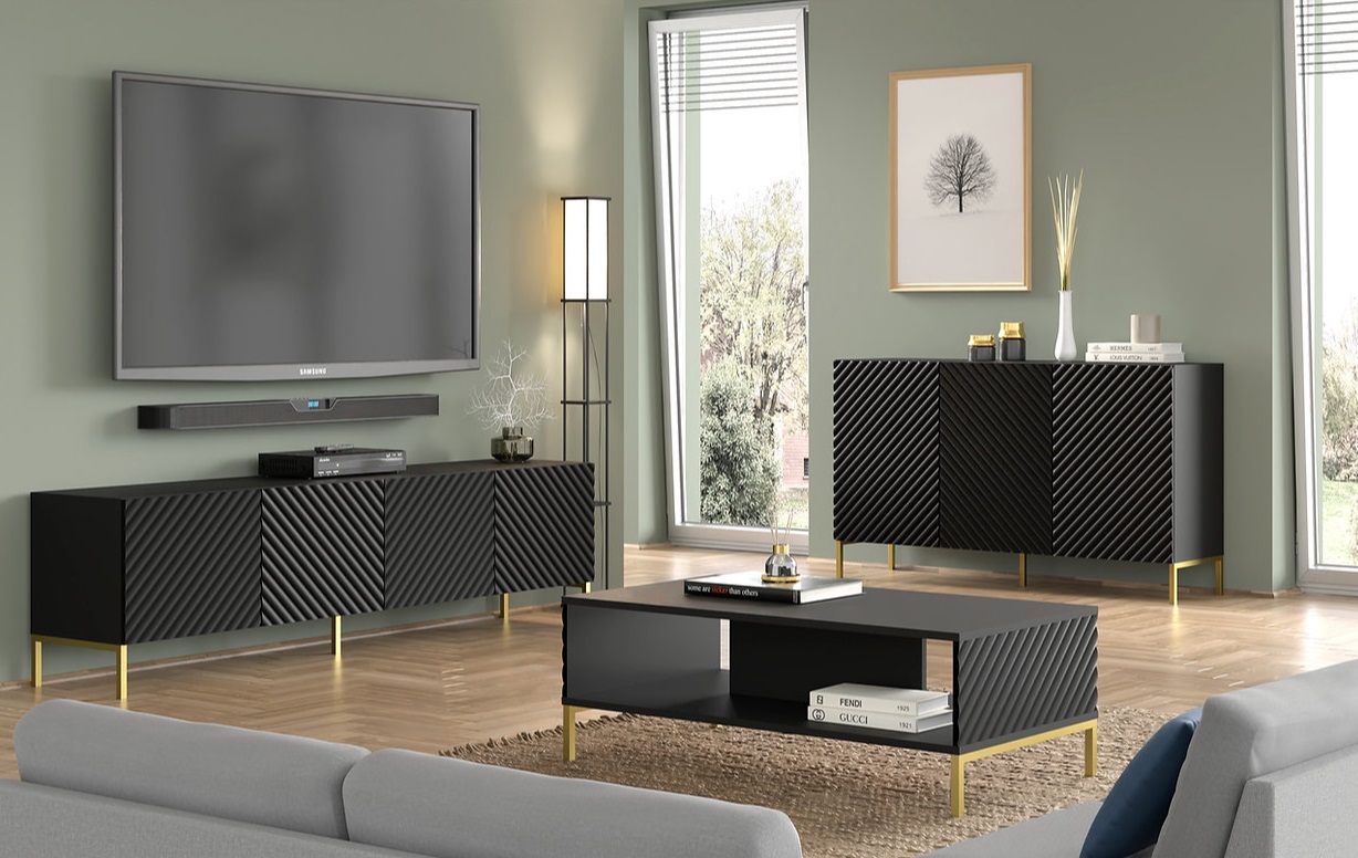 BIM TV stolík Woody 4D, 180 cm, čierny matný
