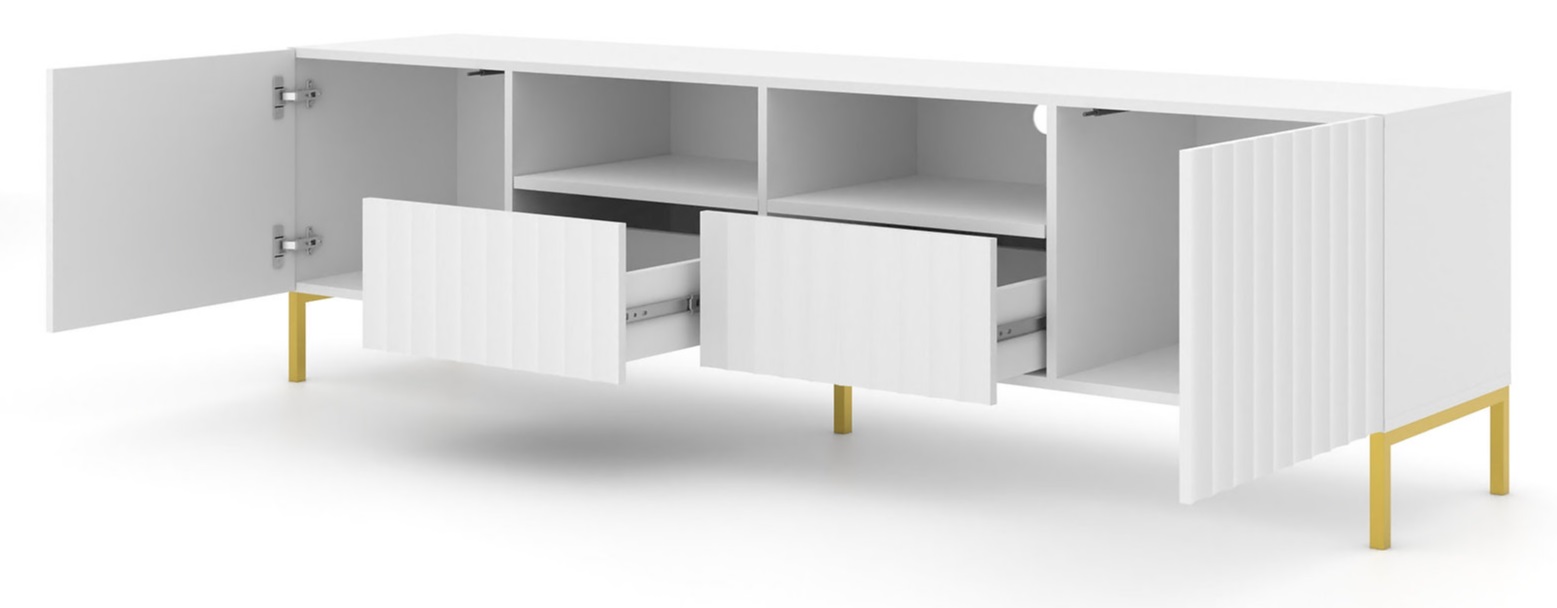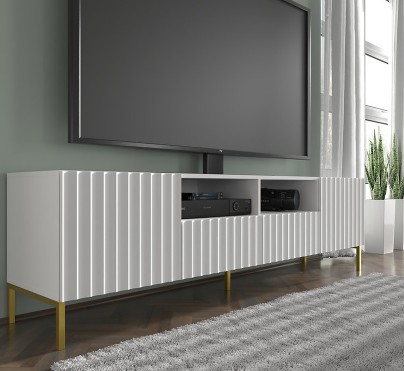 Špecifikácia pre produkt: ARTBm Tv stolík WAVE 200 | 2D2S Prevedenie: Biela mat / čierne nohy