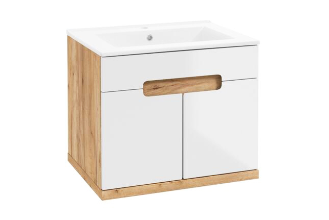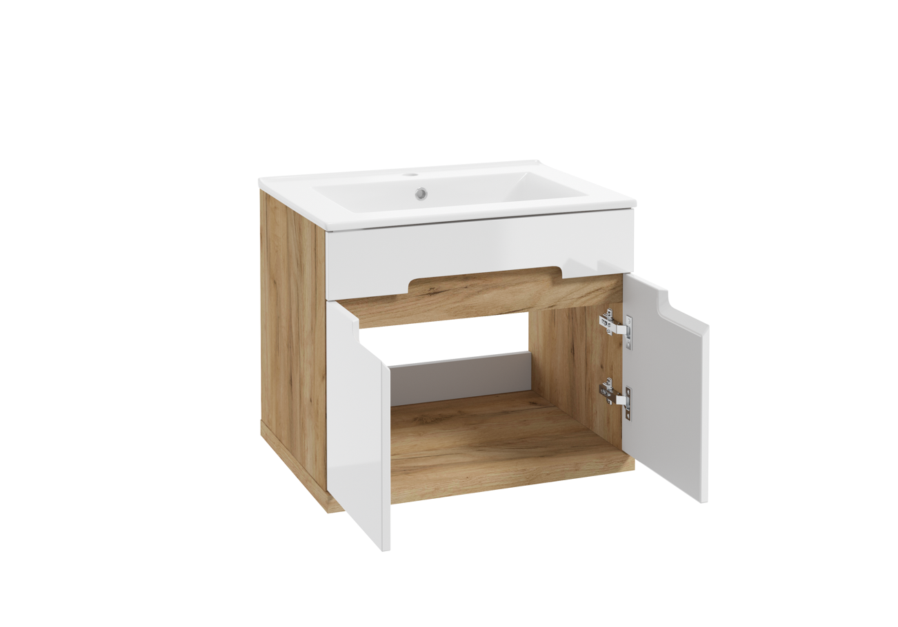 Štýlová kúpeľňová skrinka BELLO D60 kombinuje moderný dizajn s praktickosťou. Lesklý povrch odráža svetlo, čím opticky zväčšuje priestor a dodáva exkluzívny nádych. Luxusná skrinka pod umývadlo v šírke 60 cm ponúka dostatok úložného priestoru. Vyberte si dokonalú kúpeľňovú skrinku a premeňte svoju kúpeľňu na luxusný priestor! Umývadlo nie je v cene skrinky.