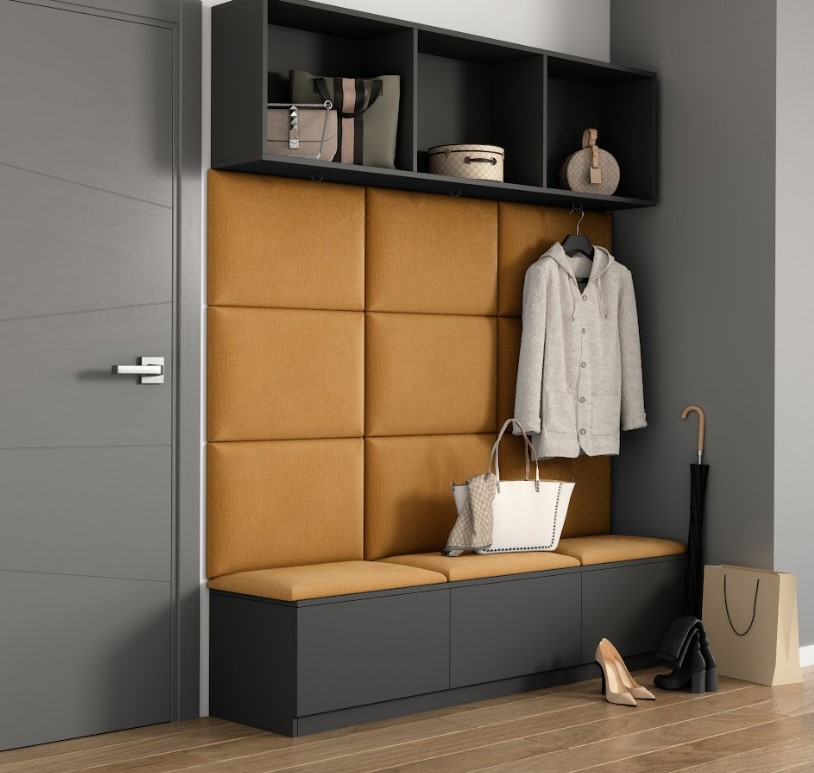 Praktický čalúnený panel je čalúnený látkou a výplň tvorí pena T21. Panel je možné naimpregnovať alebo v prípade potreby vyčistiť univerzálnym čističom.
