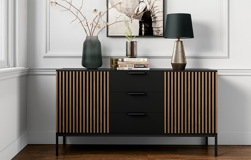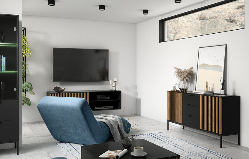Kolekcia nábytku MEORATI je ideálnym doplnkom do vašej spálne aj obývačky. Váš interiér oživí farebné prevedenie čierneho matného povrchu kombinovaného s dubom artisan. Kovové čierne nohy s výškou 20 cm zabezpečujú stabilitu, čelá nábytku s frezovanými detailmi vo farbe dub artisan podčiarkujú prirodzenú krásu. Celkový dojem dotvárajú pútavé rukoväte v matnej čiernej farbe. Kolekcia nábytku MEORATI je dokonalým spojením elegancie a trvácnej kvality pre vašu domácnosť. Komoda Meorati je ideálnym úložným priestorom do vašej spálne. Komoda Meorati má dve police a tri zásuvky, ktoré poskytujú dostatok úložného priestoru na oblečenie a iné predmety. Vďaka dvom širokým uzavretým policiam a trom zásuvkám vám komoda Meorati umožní jednoducho usporiadať oblečenie a doplnky podľa vlastných preferencií.