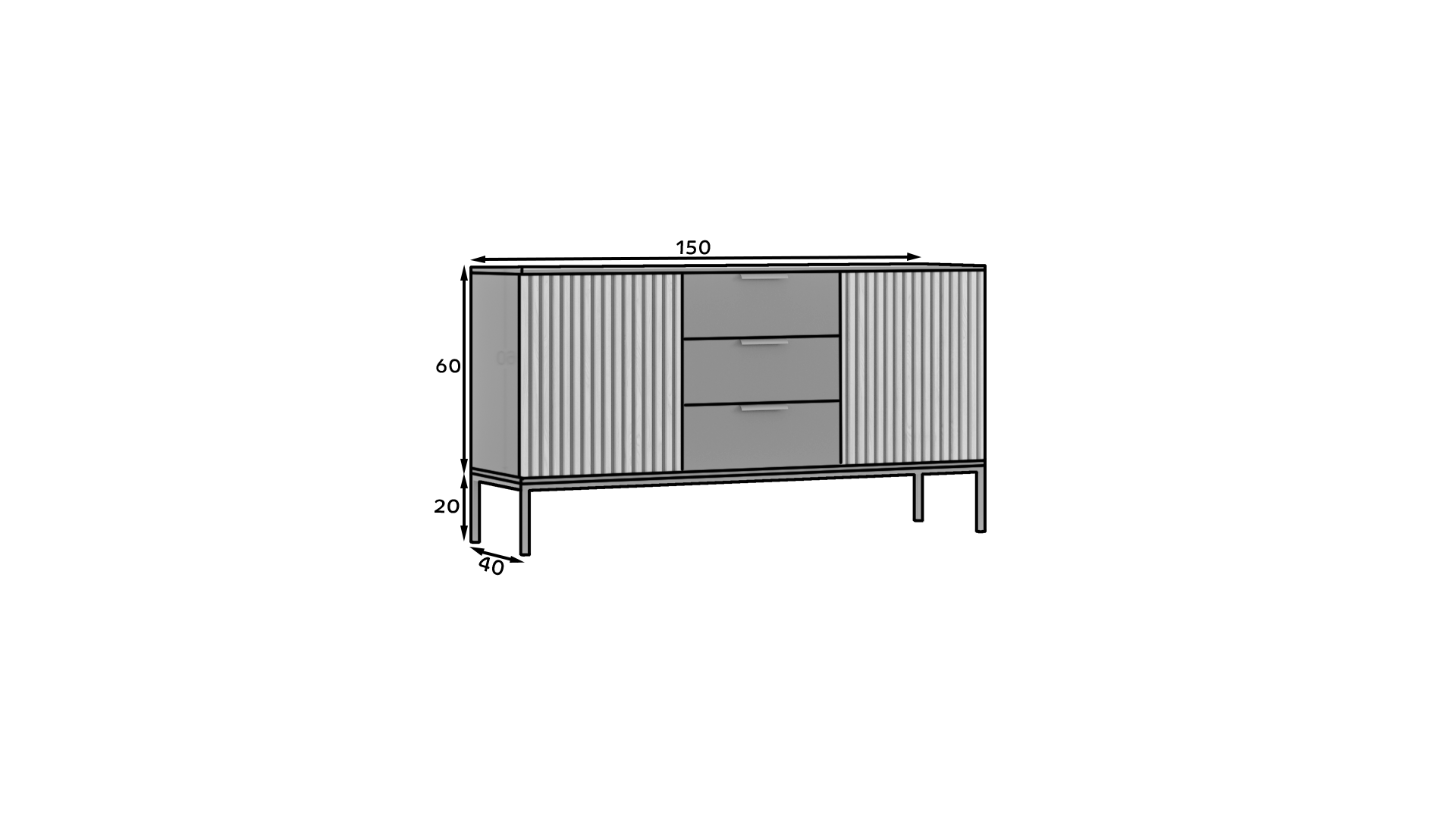 Moderná komoda MEORATI je vyrobená z laminovanej drevotrieskovej dosky s ABS hranami. Prach stačí utrieť vlhkou handričkou.
