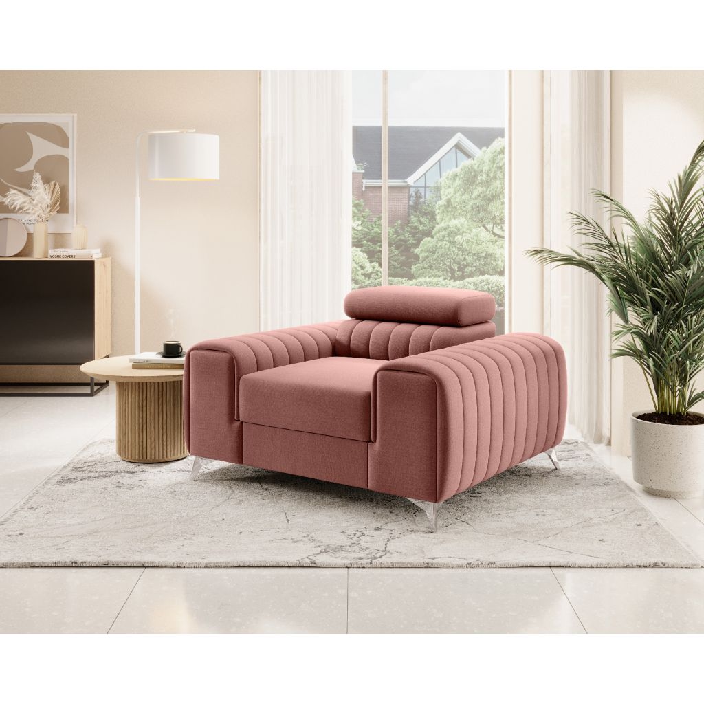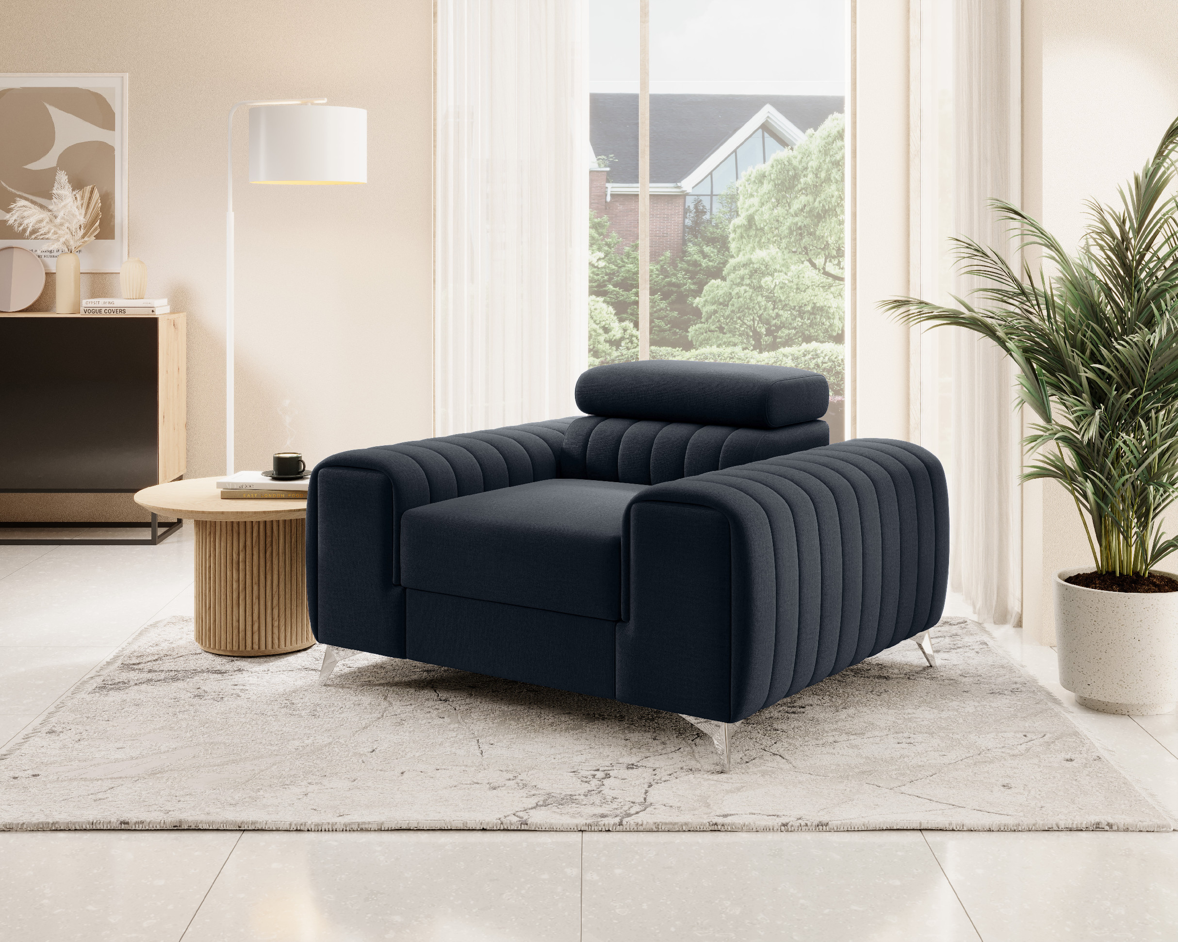 Dizajnové kreslo LAURENCE je originálne a veľmi štýlové kreslo v rôznych farebných prevedeniach. Je vhodné do modernej obývačky, do izby pre teenagera alebo do izby pre hostí. Kreslo LAURENCE má polohovacie opierky hlavy a vysoké oceľové nohy, ktoré ju odľahčujú. Vďaka kreslu LAURENCE sa budete vo vašom byte alebo dome cítiť veľmi útulne a fantasticky. Kreslo Laurence je v rovnakom dizajne s Rohová sedacia súprava LAURENCE | ľavá, Rohová sedacia súprava LAURENCE | pravá alebo Pohovka LAURENCE.
