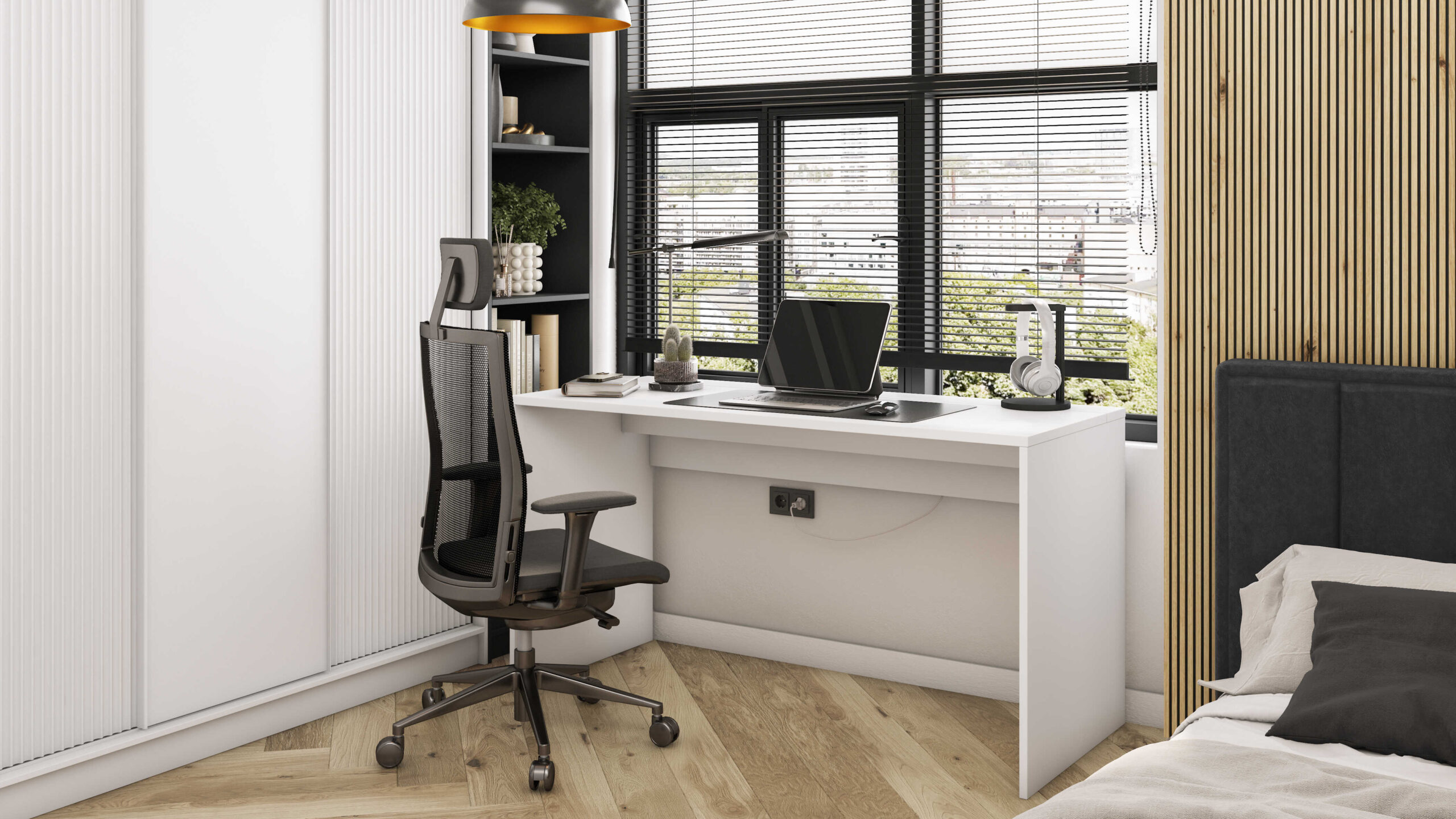 Písací stolík NEVY v modernom prevedení vytvára harmonický dizajn a robustné spracovanie. Estetiku písacieho stola zvýrazňuje 6 mm hrubá povrchová úprava hrán z PVC, vďaka čomu je bezpečný pri používaní. Plastová noha vysoká 5 mm sa perfektne hodí do každého štýlu interiéru a vytvára ucelený celok. Ďalšou výhodou písacieho stola Nevy | biela 140 je úložný priestor na káble s mechanizmom tichého zatvárania, ktorý udržuje veci upratané a poskytuje diskrétny pracovný priestor, čo dodáva estetiku navyše. Písací stôl Nevy je dostupný v dvoch farebných variantoch – bielej a čiernej, ktorá sa hodí do rôznych interiérov a prináša moderný nádych a sofistikovanosť.