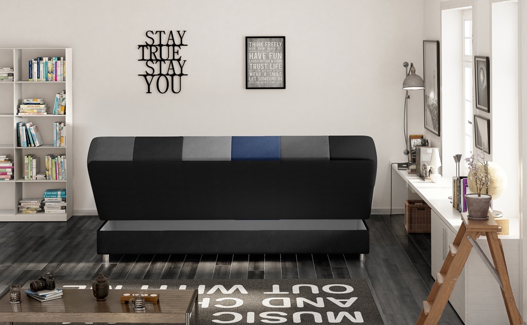 Moderná rozkladacia pohovka CAYO je originálna a veľmi štýlová pohovka v modro – sivom šachovnicovom prevedení. Je vhodná do modernej obývačky alebo do izby teenagera. Pohovka CAYO má úložný priestor vhodný pre uloženie napr. vankúšov alebo deky pre lepší relax. Vďaka rozkladacej pohovke a farebnému prevedeniu sa budete vo vašom byte alebo dome cítiť veľmi útulne a fantastický. Pohovka sa dá rozložiť pomocou klik – klak. Pohovka má stredne tvrdé sedenie.
