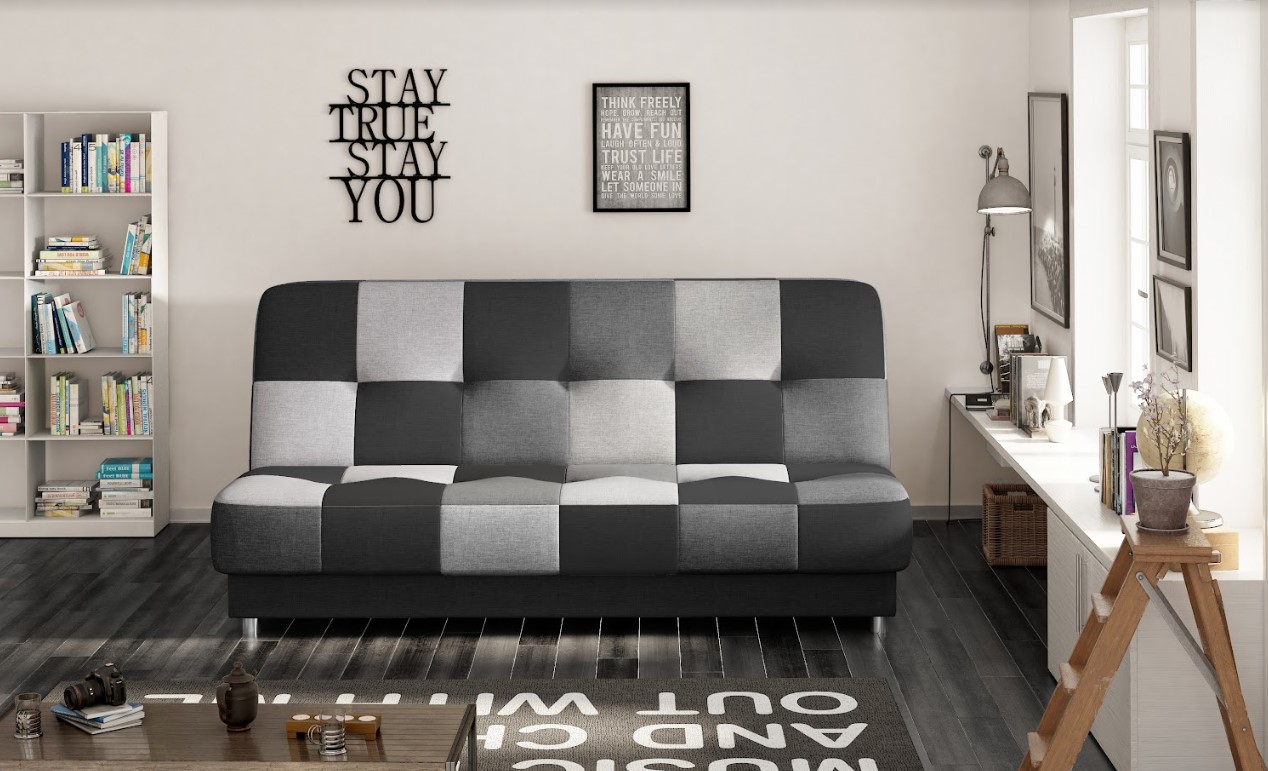 Moderná rozkladacia pohovka CAYO je originálna a veľmi štýlová pohovka v modro – sivom šachovnicovom prevedení. Je vhodná do modernej obývačky alebo do izby teenagera. Pohovka CAYO má úložný priestor vhodný pre uloženie napr. vankúšov alebo deky pre lepší relax. Vďaka rozkladacej pohovke a farebnému prevedeniu sa budete vo vašom byte alebo dome cítiť veľmi útulne a fantastický. Pohovka sa dá rozložiť pomocou klik – klak. Pohovka má stredne tvrdé sedenie.