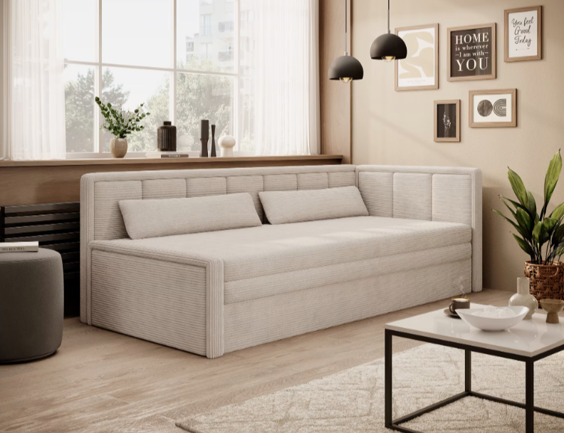 Pohovka FULGEO má elegantné čelo a vankúše, ktoré dodajú vášmu interiéru šmrnc a jedinečný vzhľad. Vankúše nie sú len vizuálnym prvkom, ale aj zabezpečujú pohodlné sedenie a oddych. Je vhodná do modernej izby pre teenagera alebo do izby pre hostí. Pohovka FULGEO má úložný priestor vhodný pre uloženie napr. vankúšov alebo paplónov. Vďaka rozkladacej pohovke FULGEO sa budete vo vašom byte alebo dome cítiť veľmi útulne a fantasticky.