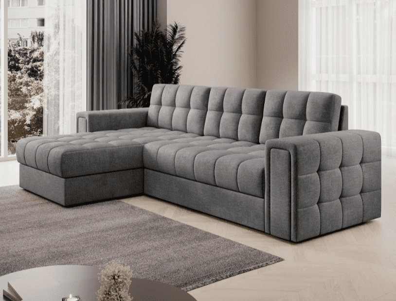 Hľadáte nábytok, ktorý spojí pohodlie, funkčnosť a moderný dizajn? Rozkladacia sedacia súprava BLENVI s úložným priestorom je ideálnym riešením! Tento typ sedačky sa stáva čoraz populárnejším v domácnostiach, a to nielen vďaka svojmu štýlovému vzhľadu, ale aj výnimočnej praktickosti. Moderná sedacia súprava BLENVI má dostatočný úložný priestor, je rozkladacia, ponúka pohodlné a široké sedenie. Sedacia súprava je celočalúnená aj zo zadnej strany. Lakťové opierky sú ozdobené prešívaním. Nožičky sedacej súpravy sú plastové. Rohová sedacia súprava BLENVI sa vyrába v rôznych farebných prevedeniach.