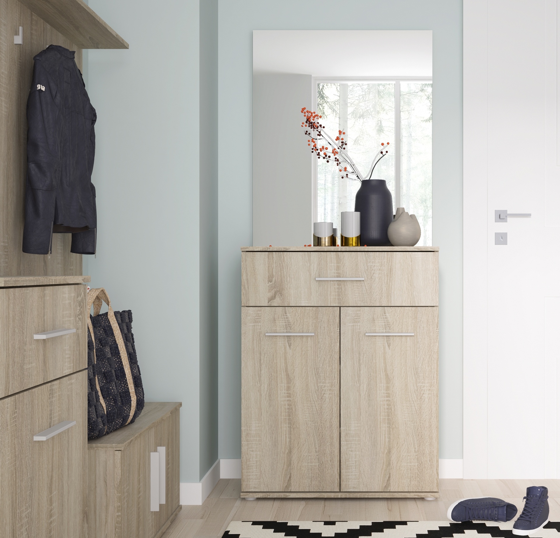 Vešiak GEMINI 27 je vyrobený z kvalitného a odolného laminátu. Čistenie je rýchle a jednoduché – stačí použiť vlhkú handričku alebo vhodný čistiaci prostriedok na nábytok.