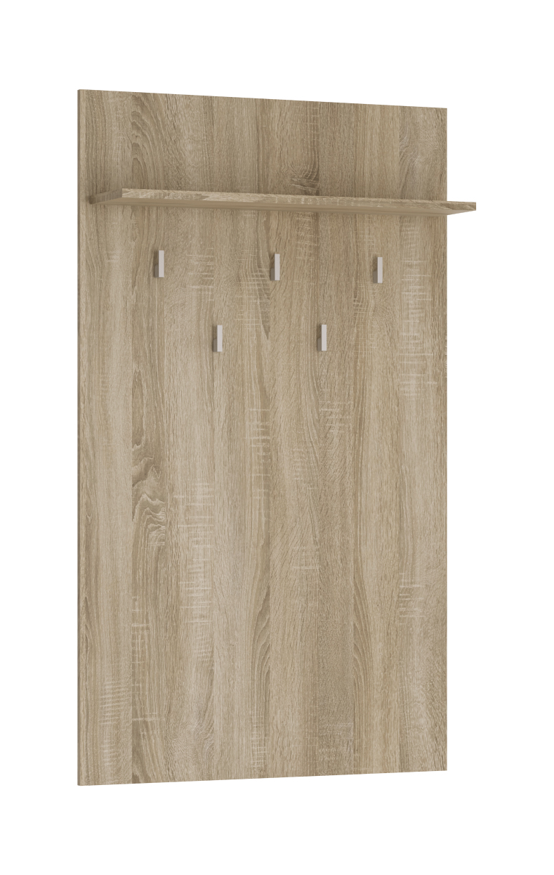 Moderný vešiak Gemini 27 v obľúbenom farebnom prevedení dub sonoma. Vešiak sa da jednoducho skombinovať s akýmkoľvek interiérom pôsobí štýlovo a zároveň harmonicky. Vešiak obsahuje 5 háčikov a jednu policu.