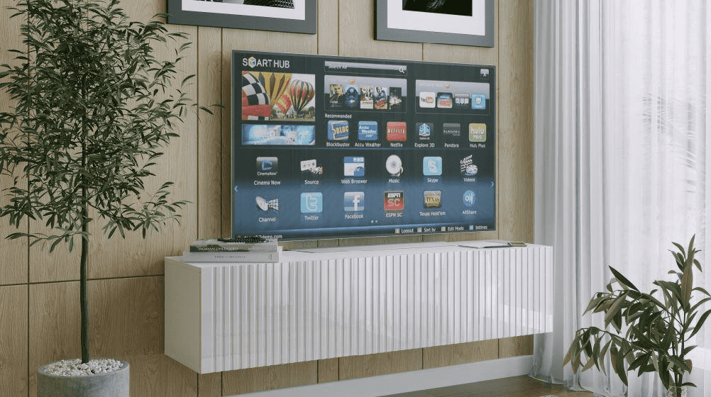 Závesný TV stolík JOY je dokonalým riešením pre modernú domácnosť, ktoré preferujú čisté línie, minimalistický dizajn. TV stolík JOY je vyrobený vo viacerých farbách a dizajnoch. Závesný TV stolík sa montuje priamo na stenu, čo znamená, že pod ním ostane voľný priestor a podlaha sa tak ľahšie udržiava čistá. Či už preferujete lesklé povrchy, matné prevedenie alebo drážkované dvierka, vyberiete si model, ktorý dokonale zapadne do vášho štýlu.