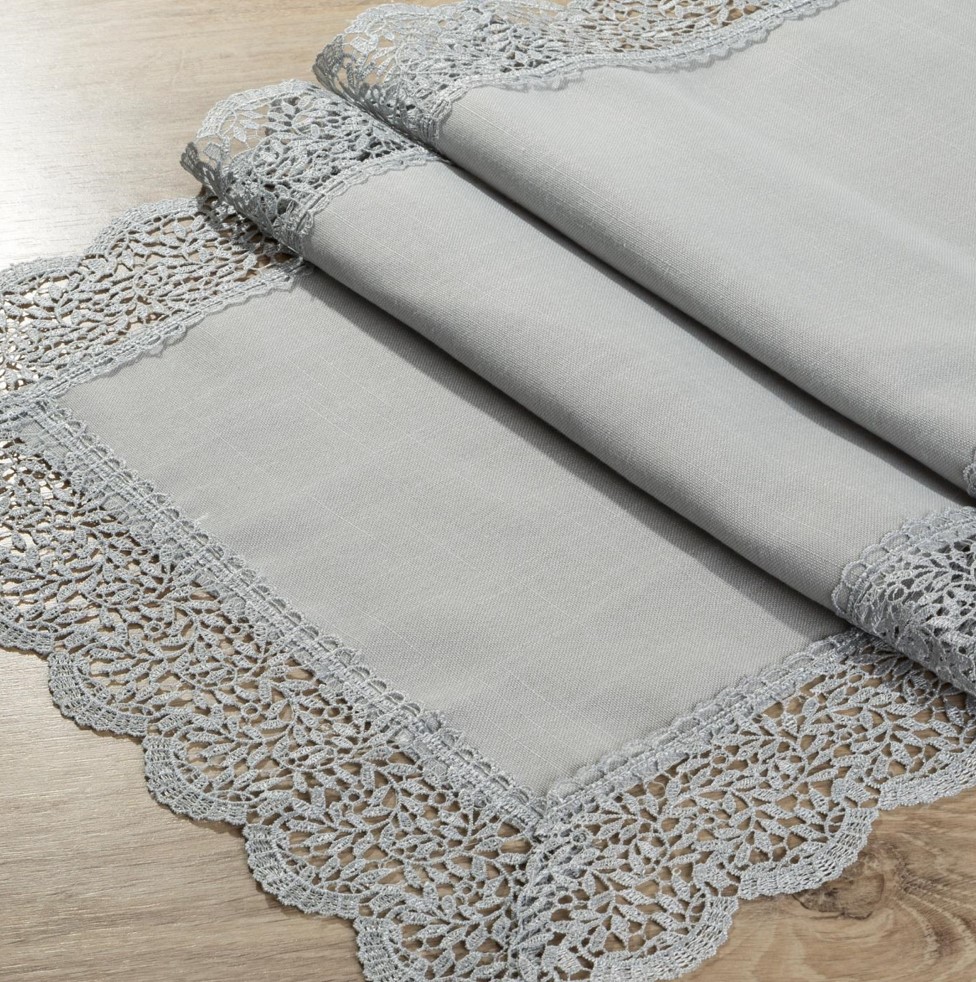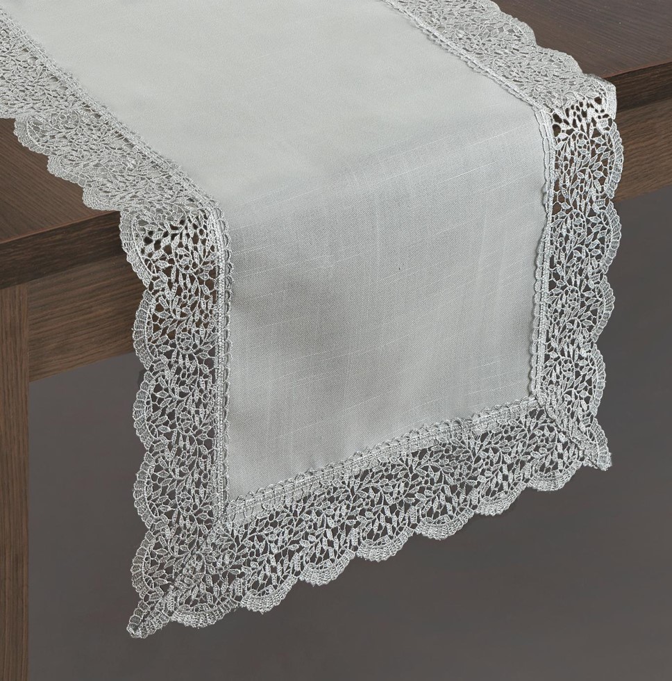 Moderný strieborný behúň BELLA 2 v praktickom rozmere 40X80 cm, s krajkou navodí sviatočnú atmosféru. Stôl obzvláštni a zároveň aspoň čiastočne ochráni vrchnú dosku pred poškodením a fľakmi. Je len na Vás na akú príležitosť si vyberiete behúň z našej ponuky.
