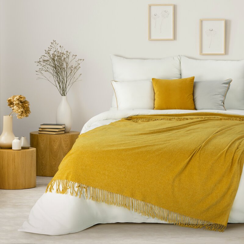 Hladká žinylková deka s lemom šírka: 130 cm, dĺžka: 170 cm, farba: žltá, hmotnosť: 220GSM GSM, zloženie: Materiál: 100% polyester