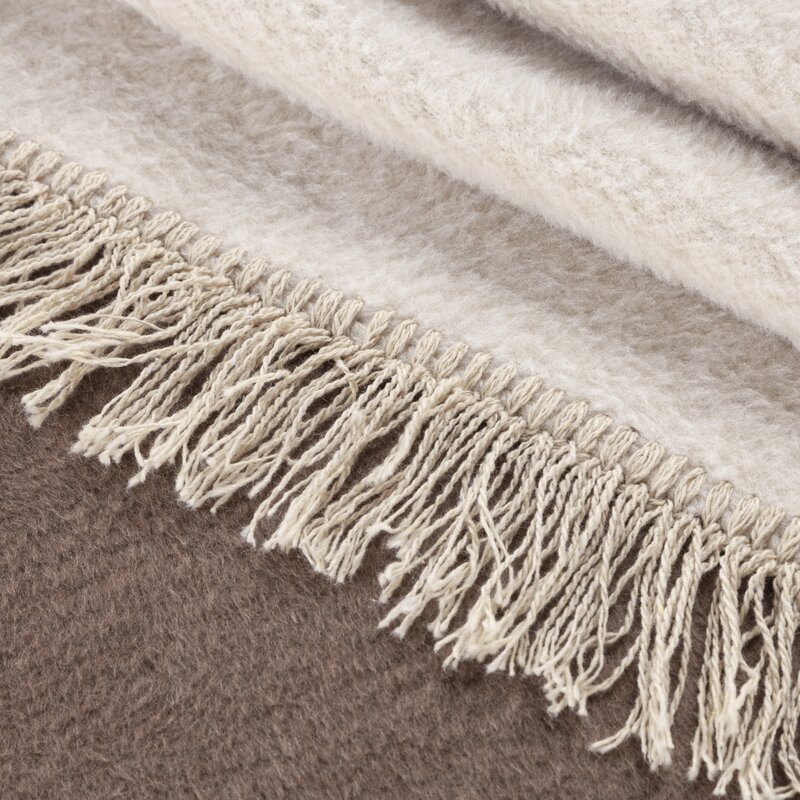 Dvojfarebná akrylová deka so strapcami šírka: 220 cm, dĺžka: 240 cm, farba: béžová, hmotnosť: 450 GSM, zloženie: Materiál: 58 % bavlna, 32 % akryl, 10 % polyester