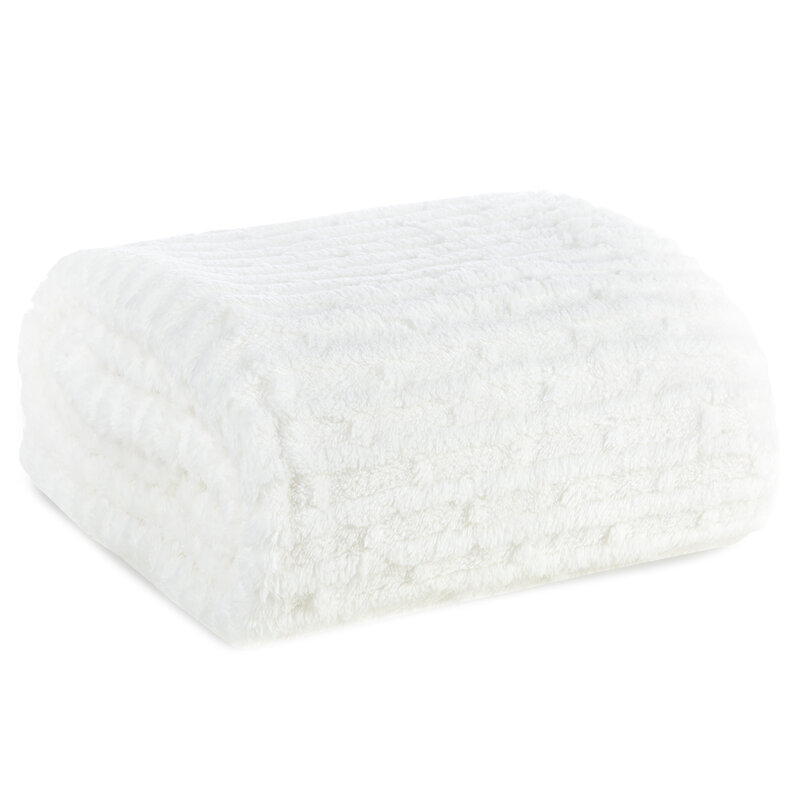 Mäkká na dotyk jednofarebná žakárová deka šírka: 70 cm, dĺžka: 160 cm, farba: biela, hmotnosť: 240 GSM, zloženie: Materiál: 100% polyester