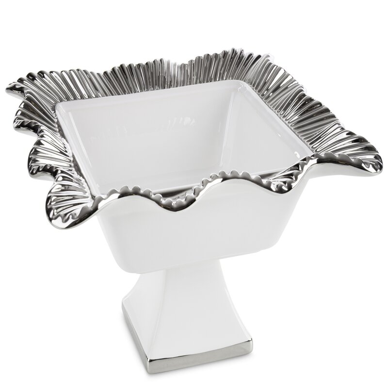 ArtFir Dekoračná miska BETSY 02 | biela/strieborná 28 x 28 x 20 cm