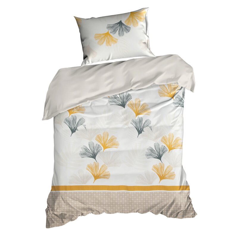 Saténová posteľná súprava s potlačou šírka: 160 cm, dĺžka: 200 cm, farba: biela, hmotnosť: 125 GSM, zloženie: 55 % bavlna, 45 % polyester. Balenie obsahuje 1 ks 160 x 200 cm, 2 ks 70 x 80 cm.