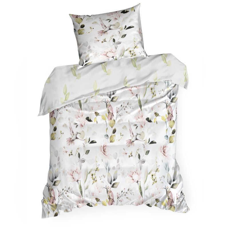 Obojstranne potlačená posteľná súprava, saténová väzba šírka: 220 cm, dĺžka: 200 cm, farba: biela, hmotnosť: 125 GSM, zloženie: 55 % bavlna, 45 % polyester. Balenie obsahuje 1 ks 220 x 200 cm, 2 ks 70 x 80 cm.