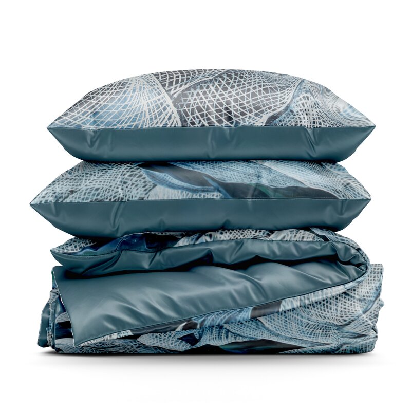 Posteľná súprava z bavlneného makosaténu s umeleckým, dekoratívnym vzorom inšpirovaným prírodou. Šírka: 220 cm, dĺžka: 200 cm, farba: tyrkysová, hmotnosť: 120 GSM, zloženie: Materiál: 100% bavlna, makosatén, Balenie obsahuje 1 ks 220 x 200 cm, 2 ks 70 x 80 cm.