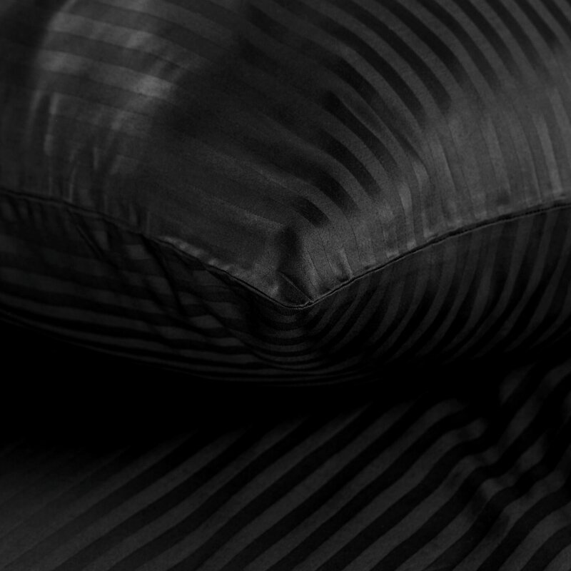 Pruhovaná jednofarebná saténová damašková posteľná súprava. Šírka: 220 cm, Dĺžka: 200 cm, Farba: čierna, Gramáž: 125 GSM, Zloženie: satén, 100% bavlna. Balenie obsahuje 1 ks 220 x 200 cm, 2 ks 70 x 80 cm.