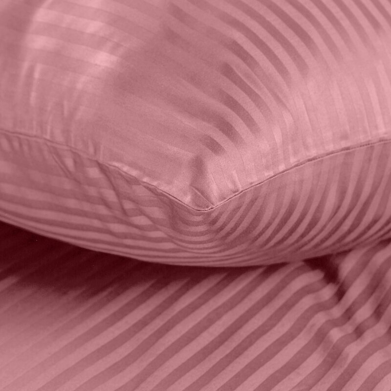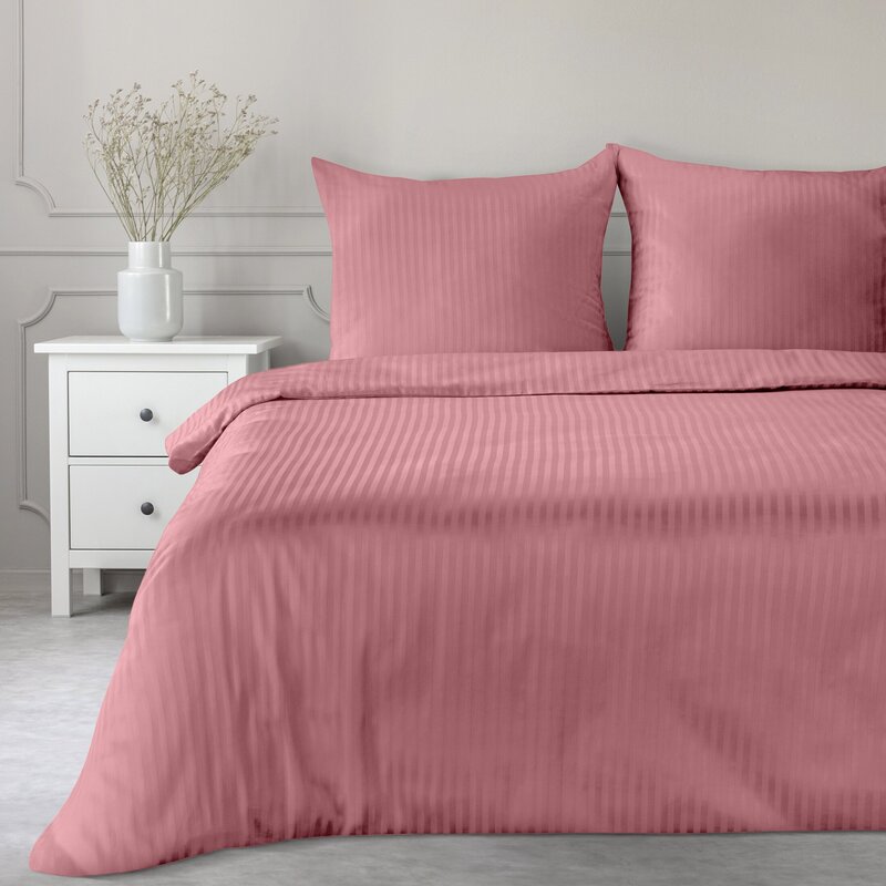 Jednofarebná pruhovaná saténová damašková posteľná súprava. Šírka: 220 cm, Dĺžka: 200 cm, Farba: púdrová ružová, Gramáž: 125 GSM, Zloženie: satén, 100% bavlna. Balenie obsahuje 1 ks 220 x 200 cm, 2 ks 70 x 80 cm.