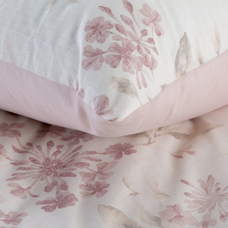Bavlnená posteľná súprava s motívom kvetov. šírka: 140 cm, dĺžka: 200 cm, farba: púdrová ružová, hmotnosť: 105 GSM, zloženie: Materiál: 100% bavlna. Balenie obsahuje 1 ks 140 x 200 cm, 1 ks 70 x 80 cm.