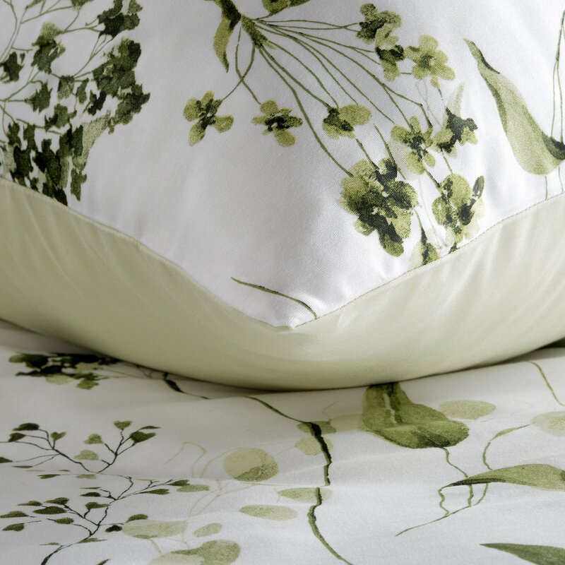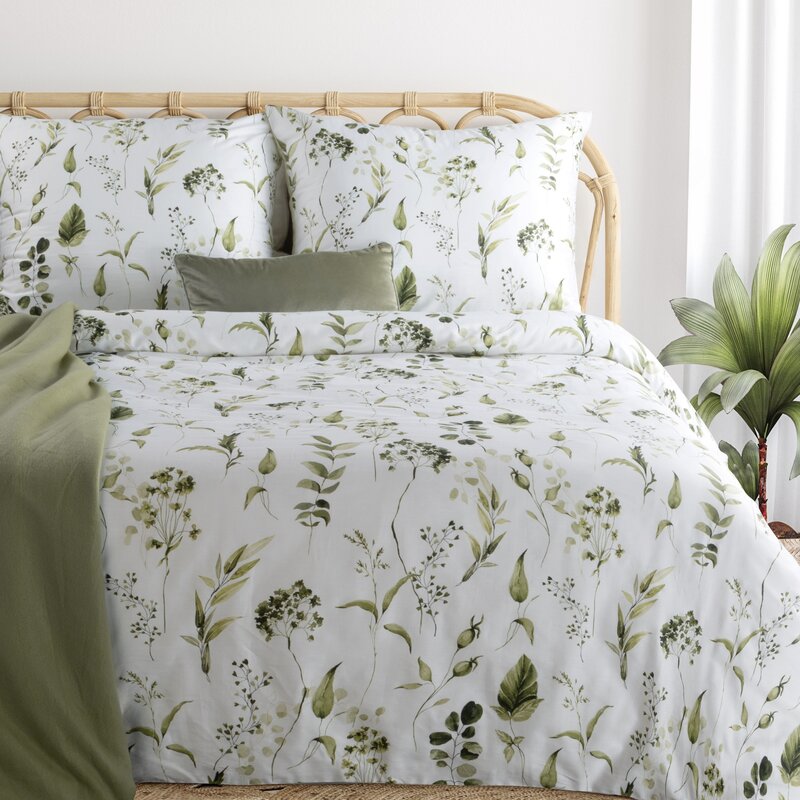 Posteľná súprava z bavlneného saténu s potlačou. Šírka: 140 cm, Dĺžka: 200 cm, Farba: olivová, Hmotnosť: 115 GSM, Zloženie: satén, 100% bavlna, Balenie obsahuje: 1ks 140 x 200 cm, 1 ks 70 x 80 cm.