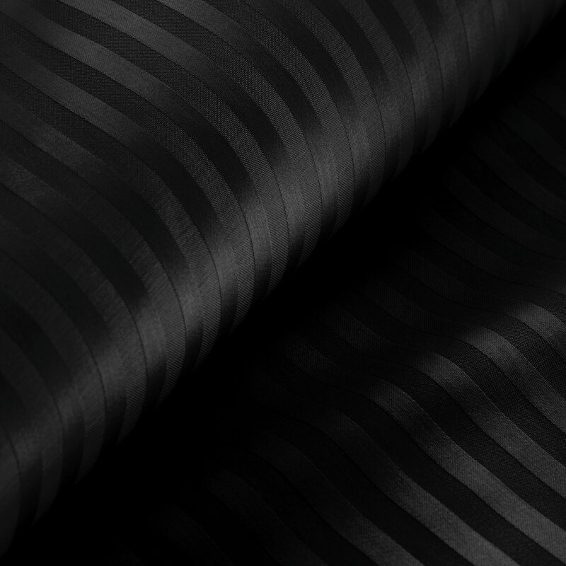 Jednofarebná pruhovaná saténová damašková posteľná súprava. Šírka: 140 cm, Dĺžka: 200 cm, Farba: čierna, Hmotnosť: 125 GSM, Zloženie: satén, 100% bavlna. Balenie obsahuje 1 ks 140 x 200 cm, 1 ks 70 x 80 cm.