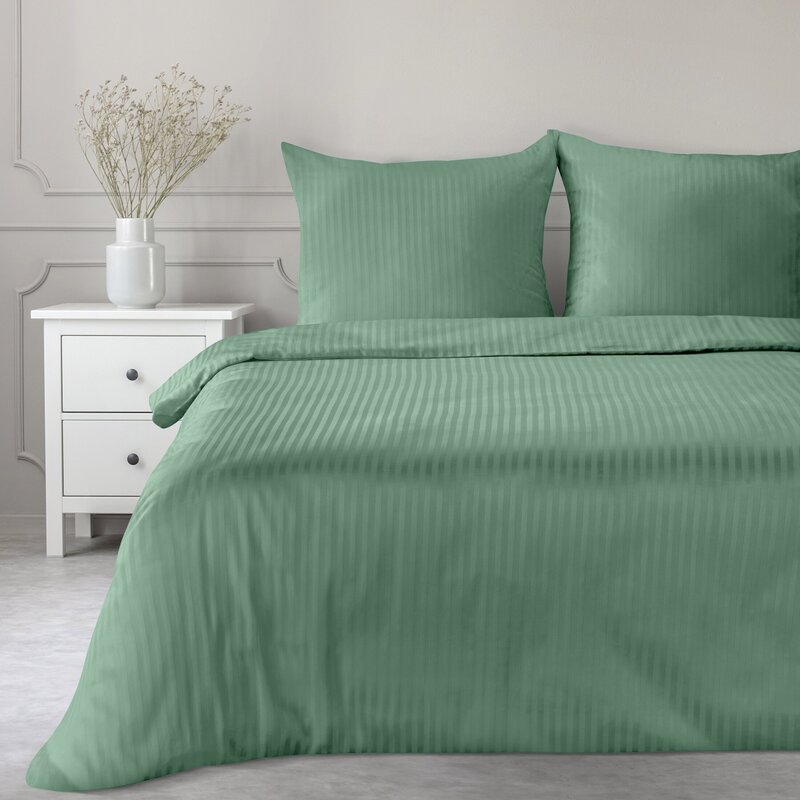 Jednofarebná pruhovaná saténová damašková posteľná súprava. Šírka: 140 cm, Dĺžka: 200 cm, Farba: mätová, Gramáž: 125 GSM, Zloženie: satén, 100% bavlna. Balenie obsahuje 1 ks 140 x 200 cm, 1 ks 70 x 80 cm.