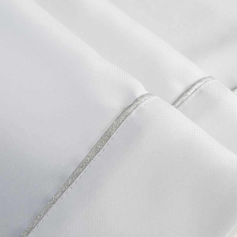 Obrus s jemným strieborným lemovaním, balený v elegantnej krabici šírka: 145 cm, dĺžka: 350 cm, farba: biela, hmotnosť: 190 GSM, zloženie: Materiál: 100% polyester