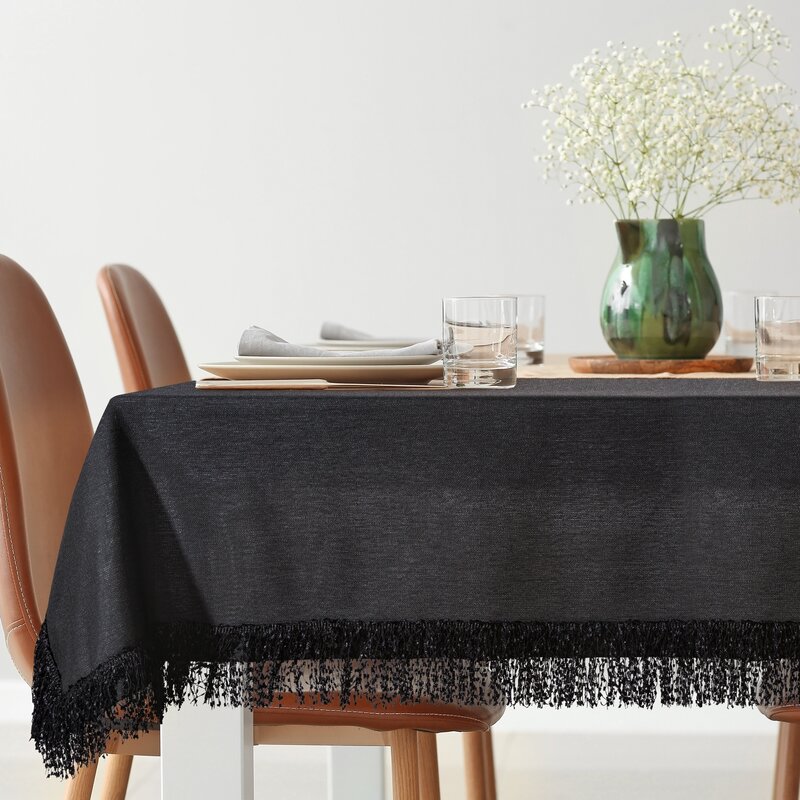 Exkluzívny jednofarebný obrus s ozdobným strapcom šírka: 140 cm, dĺžka: 260 cm, farba: čierna, hmotnosť: 255 GSM, zloženie: Materiál: 100% polyester