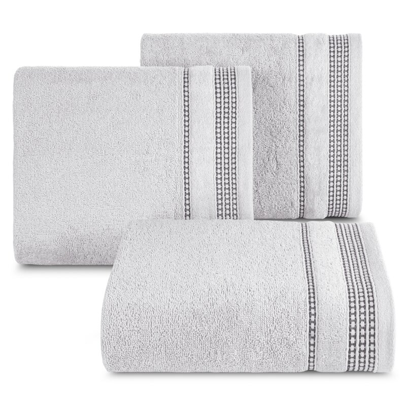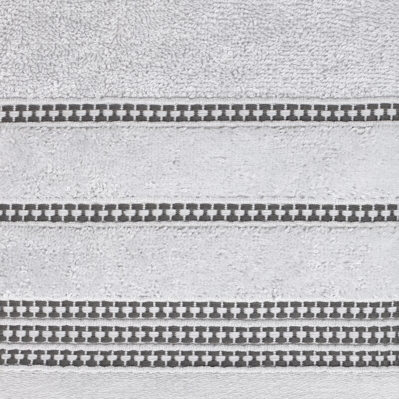 Osuška s ozdobným velúrovým pruhom šírka: 70 cm, dĺžka: 140 cm, farba: strieborná, hmotnosť: 500 GSM, zloženie: Materiál: 100 % bavlna: dekoratívna časť: Materiál: 100% polyester