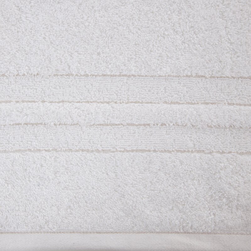 Bavlnený uterák s lemovaním zdobeným lesklou niťou šírka: 70 cm, dĺžka: 140 cm, farba: biela, hmotnosť: 500 GSM, zloženie: Materiál: 100% bavlna: ozdobná časť: Materiál: 95% bavlna, 5% polyester