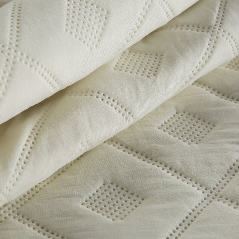 Jednofarebný prehoz na posteľ, vyrobený technikou horúceho lisovania Šírka: 170 cm, Dĺžka: 210 cm, Farba: krémová, Hmotnosť: 85 GSM, Zloženie: Materiál: 100% polyester