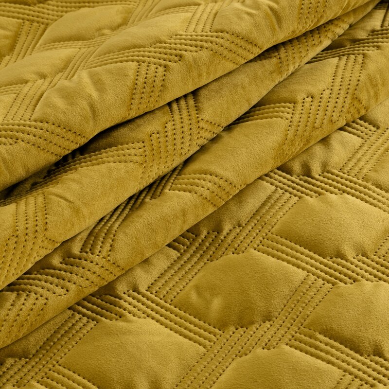 Zamatový prehoz, vyrobený technikou horúceho lisovania“ Šírka: 220 cm, Dĺžka: 240 cm, Farba: horčicová, Hmotnosť: 250 GSM, Zloženie: Materiál: 100% polyester“