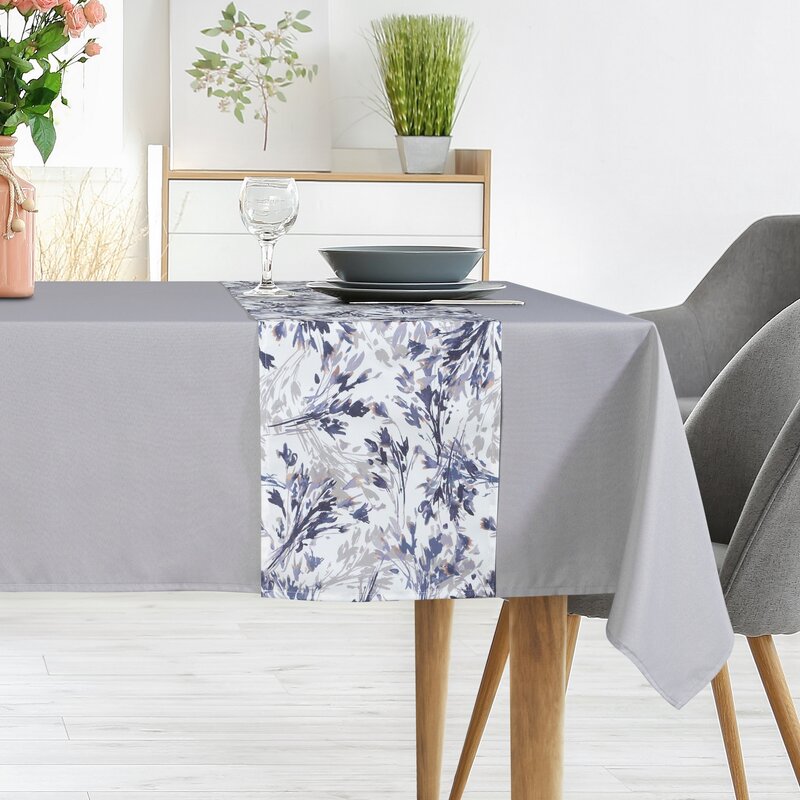 Dekoračný obrus s krídlom šírka: 140 cm, dĺžka: 220 cm, farba: svetlosivá, hmotnosť: 155 GSM, zloženie: Materiál: 100% polyester. Balenie obsahuje 1 ks obrus a 1 ks behúň.