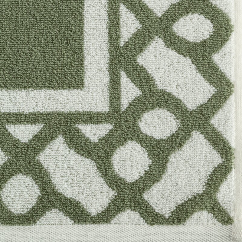 Bavlnený uterák s okrajmi zdobenými geometrickým vzorom. šírka: 50 cm, dĺžka: 90 cm, farba: mentolová, hmotnosť: 500 GSM, zloženie: Materiál: 100% bavlna