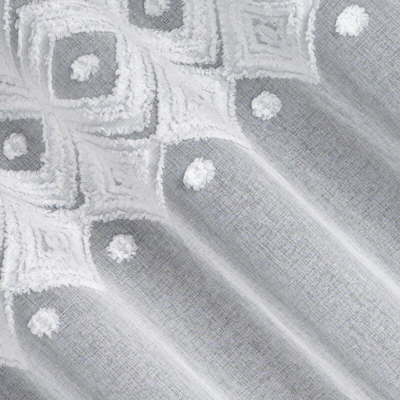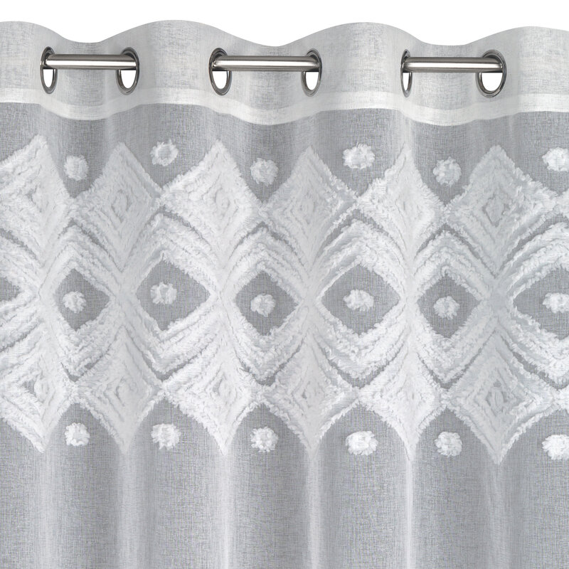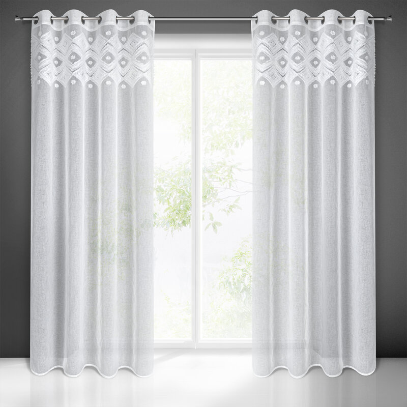 Hotová záclona v boho štýle šírka: 140 cm, dĺžka: 250 cm, farba: biela, hmotnosť: 100 GSM, zloženie: Materiál: 100% polyester