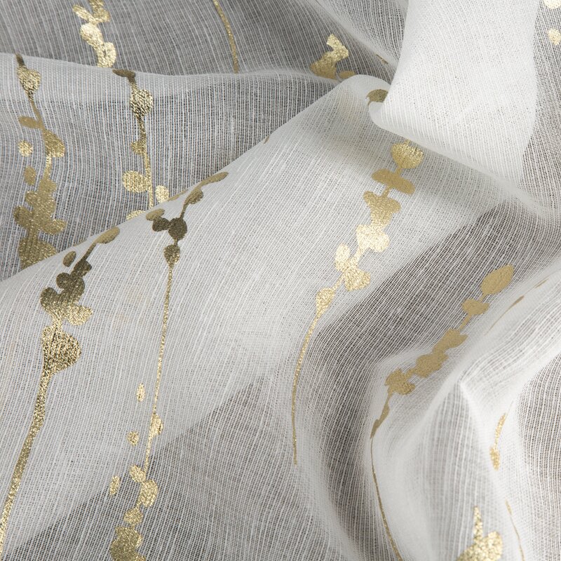 Hotová záclona v ekologickom štýle s lesklou potlačou šírka: 140 cm, dĺžka: 270 cm, farba: biela, hmotnosť: 95 GSM, zloženie: Materiál: 100% polyester