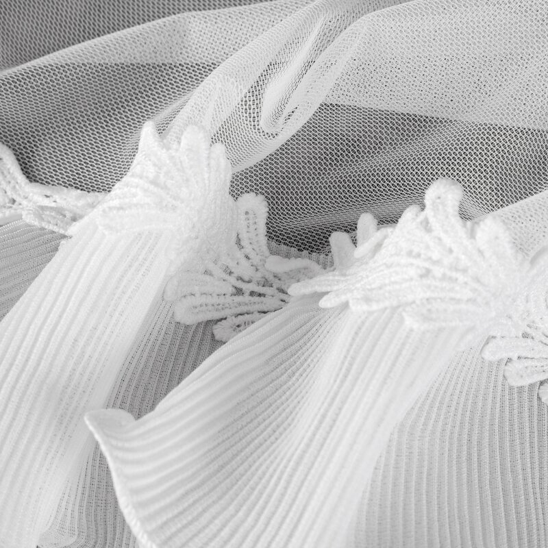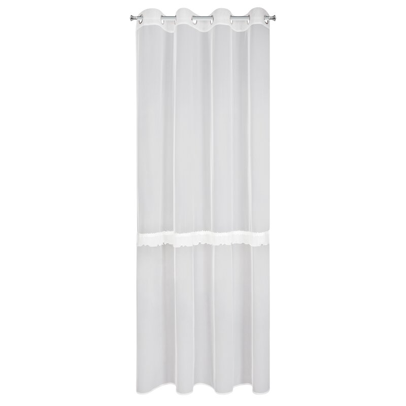 Hotová záclona zdobená aplikáciou šírka: 140 cm, dĺžka: 260 cm, farba: biela, hmotnosť: 70 GSM, zloženie: Materiál: 100% polyester