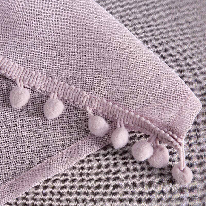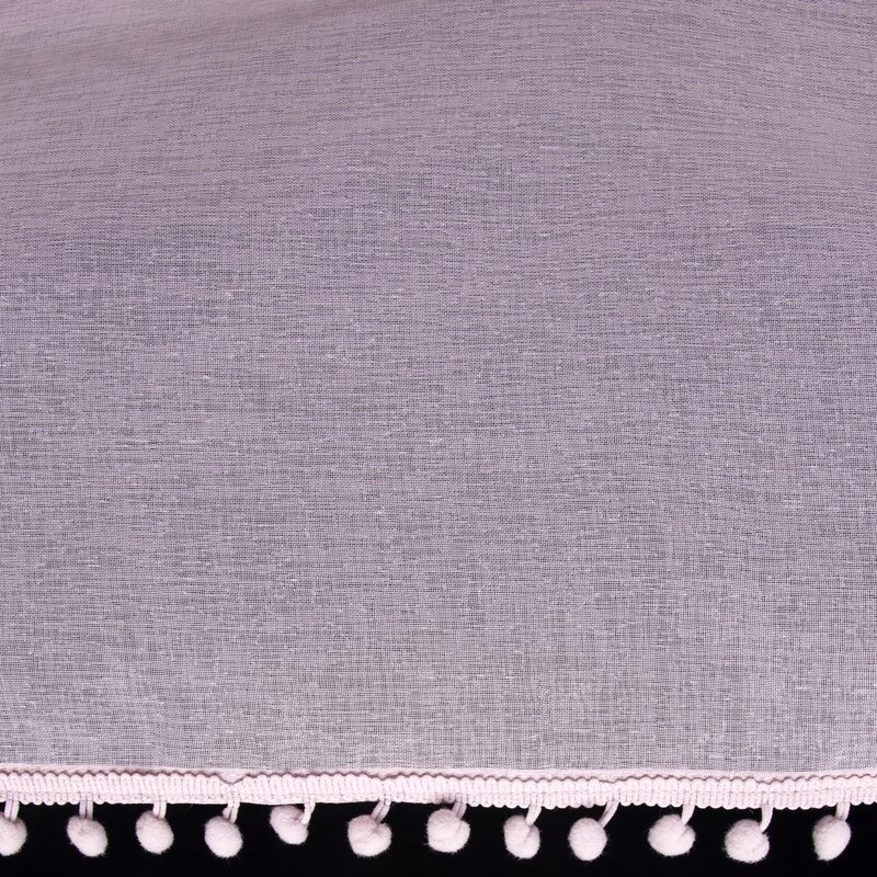 Záclona z etamínu zdobená stuhou s bambuľkami šírka: 140 cm, dĺžka: 270 cm, farba: lila, hmotnosť: 50 GSM, zloženie: Materiál: 100% polyester