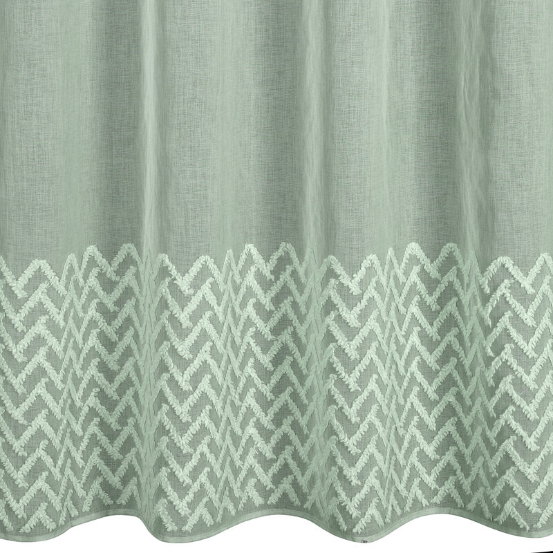 Hotový záves zdobený geometrickou aplikáciou šírka: 140 cm, dĺžka: 250 cm, farba: mentolová, hmotnosť: 80 GSM, zloženie: Materiál: 100% polyester