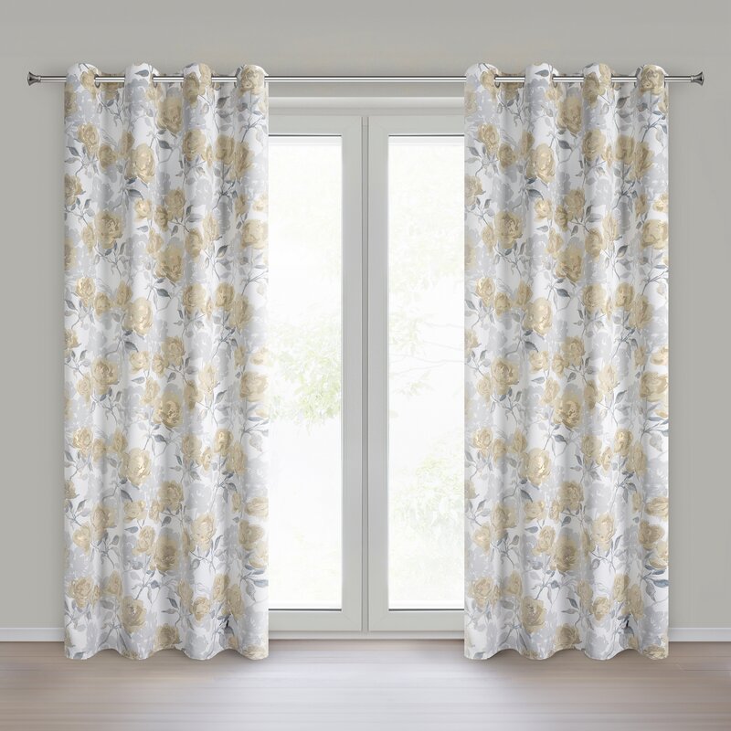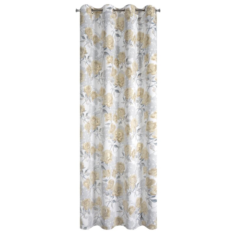 Hotový záves s kvetinovým motívom s lesklou potlačou. šírka: 140 cm, dĺžka: 250 cm, farba: strieborná, hmotnosť: 190 GSM, zloženie: Materiál: 100% polyester