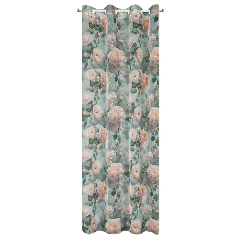 Hotový záves z etamínu s kvetinovou potlačou šírka: 140 cm, dĺžka: 250 cm, farba: mentolová, hmotnosť: 70 GSM, zloženie: Materiál: 100% polyester