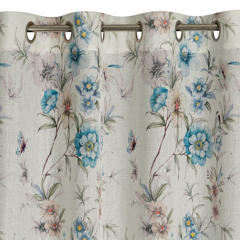 Hotová záclona v ekologickom štýle s kvetinovou potlačou šírka: 140 cm, dĺžka: 250 cm, farba: prírodná, hmotnosť: 130 GSM, zloženie: Materiál: 100% polyester