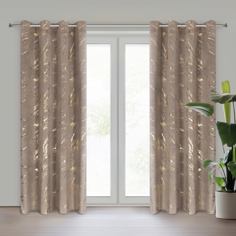 Elegantný zamatový záves s lesklou potlačou. šírka: 140 cm, dĺžka: 250 cm, farba: hnedá, hmotnosť: 200 GSM, zloženie: Materiál: 100% polyester