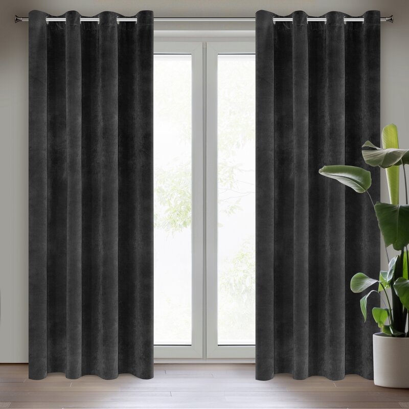Zamatový záves na 10 priechodiek šírka: 140 cm, dĺžka: 250 cm, farba: čierna, hmotnosť: 290 GSM, zloženie: Materiál: 100% polyester