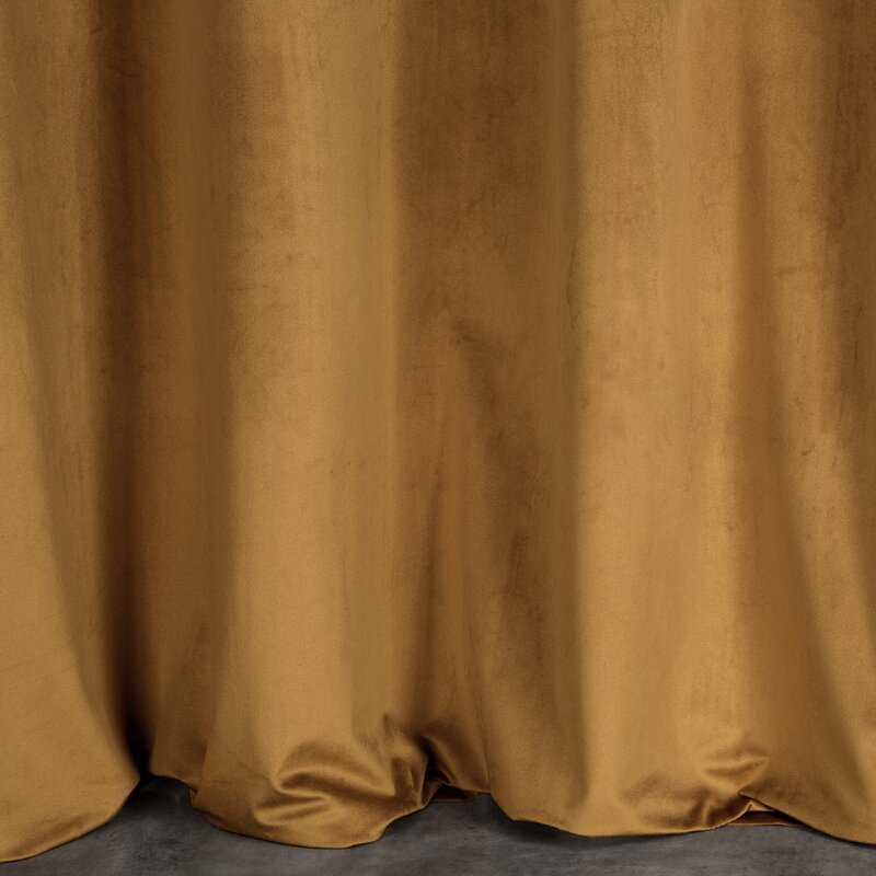 Mäkký zamatový záves s matným povrchom. Mäkká tkanina so stredne tieniacimi vlastnosťami dodá interiéru elegantný nádych. Šírka: 140 cm, dĺžka: 250 cm, farba: medová, hmotnosť: 200 GSM, zloženie: Materiál: 100% polyester