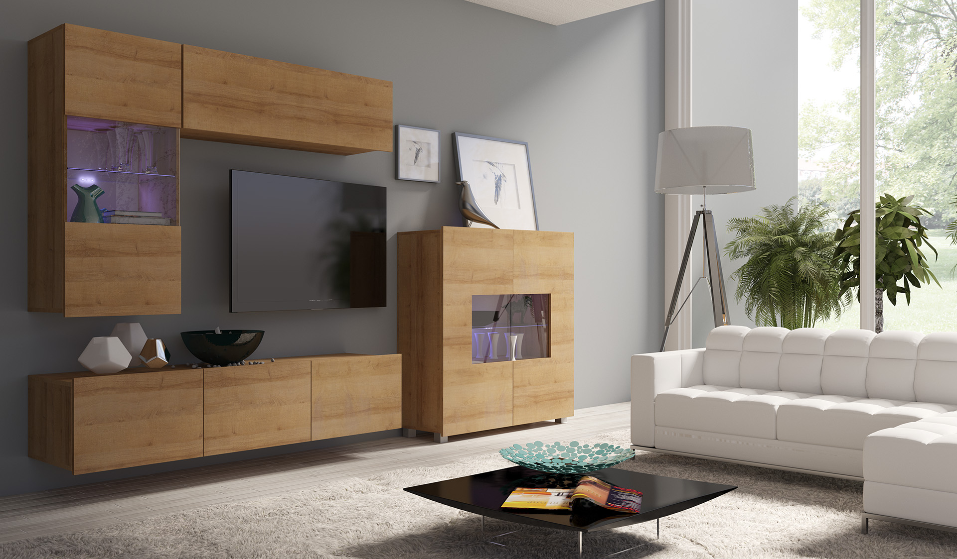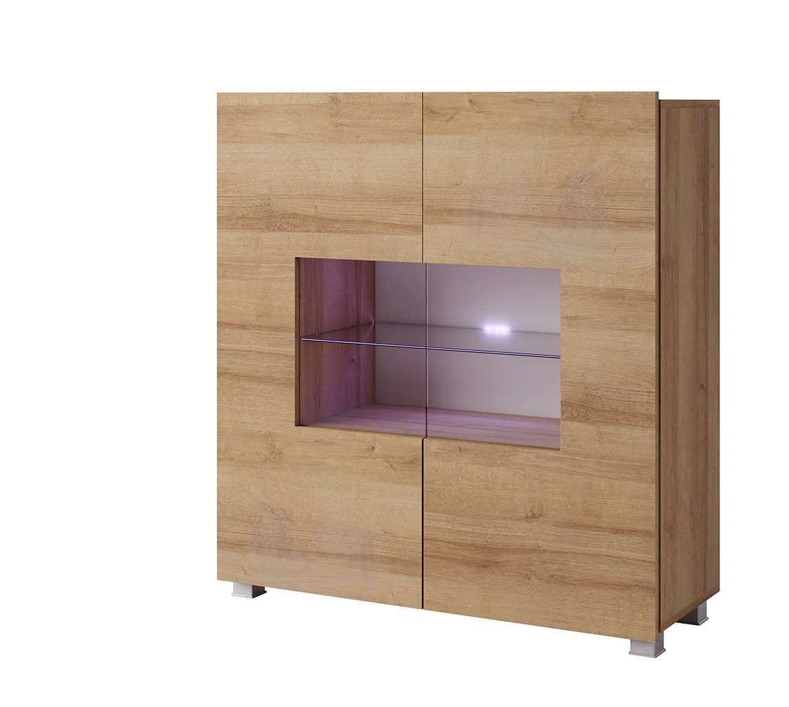 Elegantná komoda CALABRINI C-02 v krásnom matnom farebnom prevedení dub zlatý. Nábytok je navrhnutý tak, aby zapadol do každého moderného bytu či domu. Dvierka majú bezúchytkový systém čo dodáva nábytku eleganciu a nadčasovosť. Komoda CALABRINI má dve dvierka, z časti presklené. Ku komode je možné doobjednať LED osvetlenie bielej farbe.