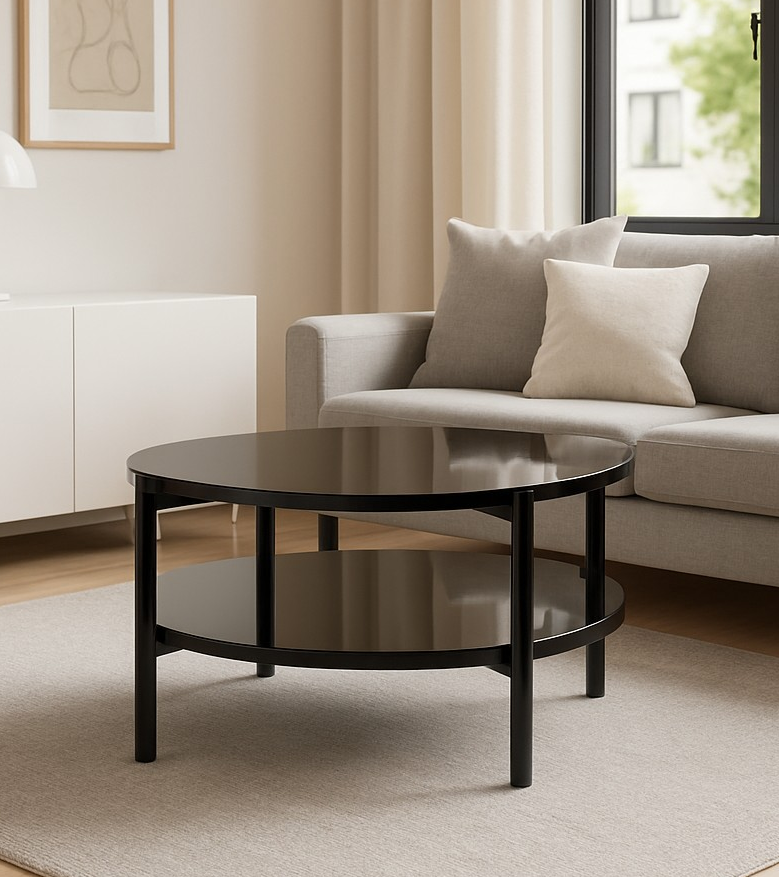 Štýlový konferenčný stolík SIGMA B v prevedení čiernych nôh a s jedinečnou čiernou lesklou farbou dosky stola a police, ktorá je pod hlavnou doskou. Táto čierna povrchová úprava dodáva stolíku elegantný a štýlový vzhľad, ideálny pre akýkoľvek moderný interiér. Stolík, ktorý kombinuje moderný dizajn, vysokokvalitné materiály a praktické funkcie, je navrhnutý tak, aby splnil vaše požiadavky na pohodlné a efektívne stretnutia s priateľmi a rodinou.